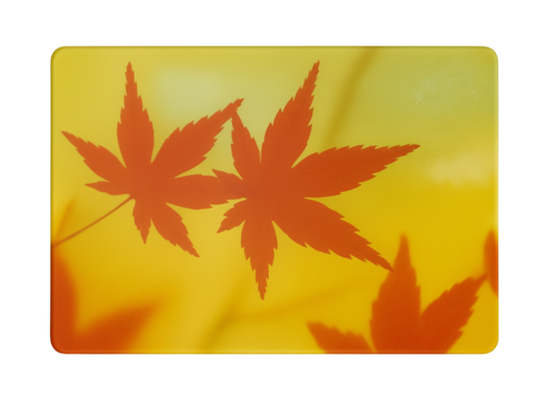 Bring warm autumn vibes into your kitchen with this elegant maple leaf–themed glass cutting board. Featuring rich yellow tones and vibrant orange leaves, it adds seasonal charm while delivering everyday practicality.